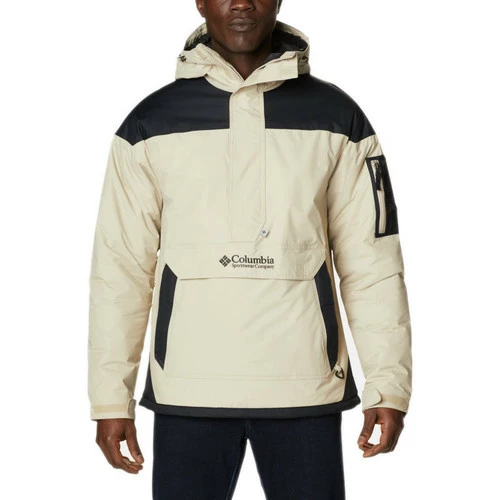 Veste demi-zip Columbia Challenger – Réf. 1698431271. Couleur : Beige, Noir. Détails. – Capuche intégrée réglable. – Ourlet et poignets réglables. – Fermeture demi-zip. – Une grande poche à rabat avec logo sur le devant. – Logo Columbia brodé sur la capuche. – Conçu pour protéger du froid. Matière : 100% polyester.